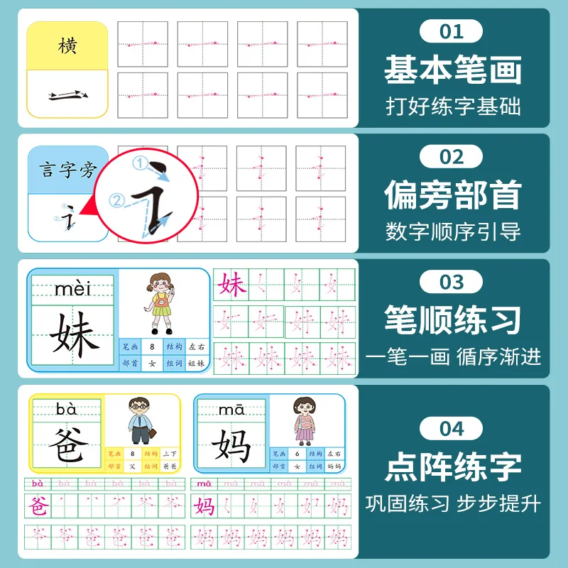 tiNDVfHfpЗдесь вы сможете купить 4 Sets Of Pre-School 600-word Calligraphy Practice Stickers Pen Control Training For Students And haracters Beginners с бесплатной доставкой до вашего почтового отделения.
