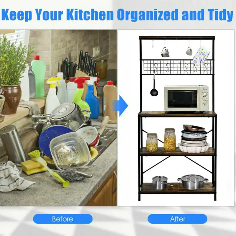 "4 Tier Baker's Rack for Kitchens Rack Storage Shelf Cart with Hanging Hooks Brown" * Buy Now With Free Shipping Just For $65