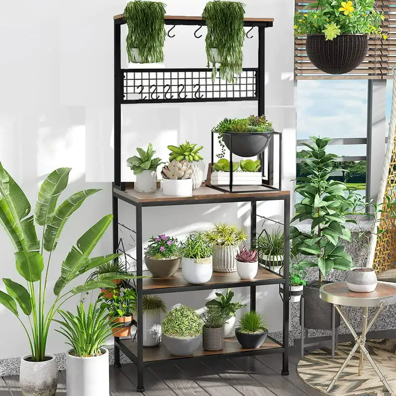 "4 Tier Baker's Rack for Kitchens Rack Storage Shelf Cart with Hanging Hooks Brown" * Buy Now With Free Shipping Just For $71