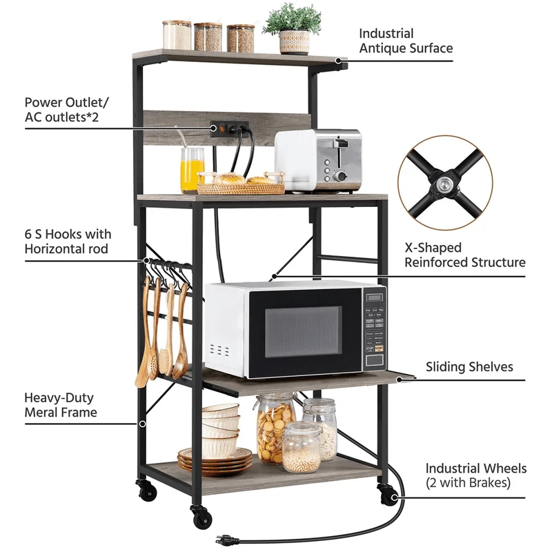 nlCqnHDYGHere you can buy 4-Tier Kitchen Baker's Racks with 2 AC Outlets for Kitchens, Gray with free delivery to your post office.