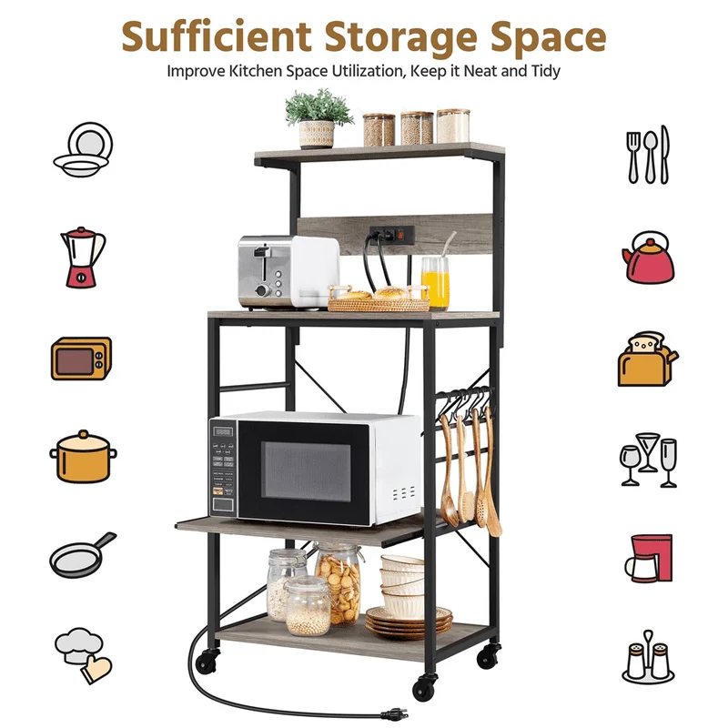 "4-Tier Kitchen Baker's Racks with 2 AC Outlets for Kitchens, Gray" * Buy Now With Free Shipping Just For $82