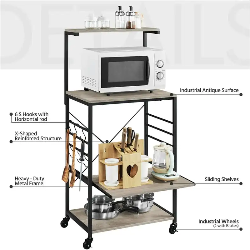 dhkoTeYFxHere you can buy 4-Tier Kitchen Cart Bakers Rack with Side Hooks, Gray with free delivery to your post office.