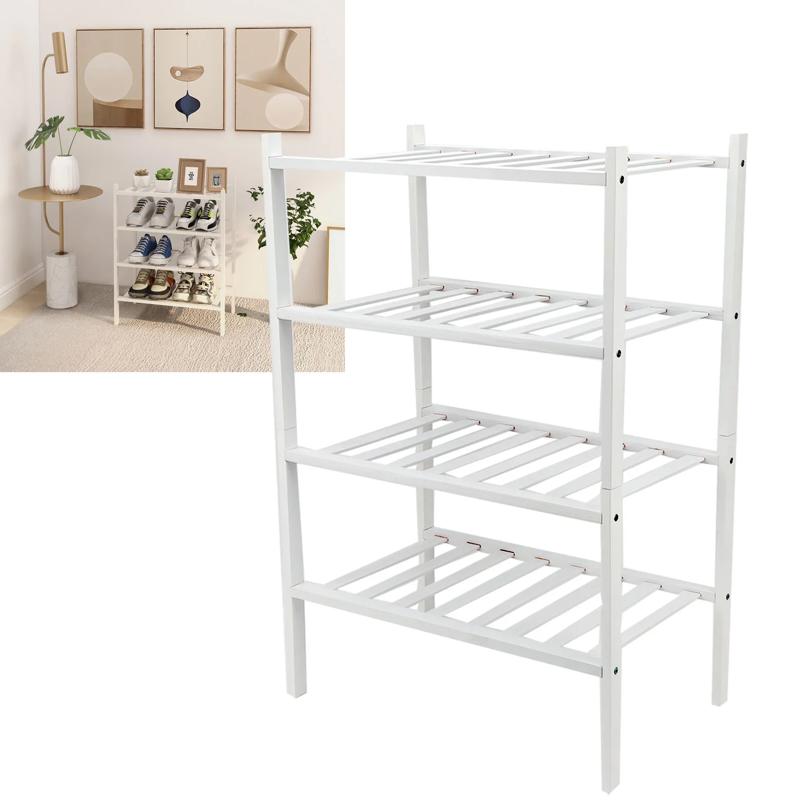 BHYDLONMgHere you can buy 4 Tier Shoe Rack White Stackable Shoes Rack Organizer Multifunctional Bamboo Shoe Rack For Home Hotel Dorm with free delivery to your post office.