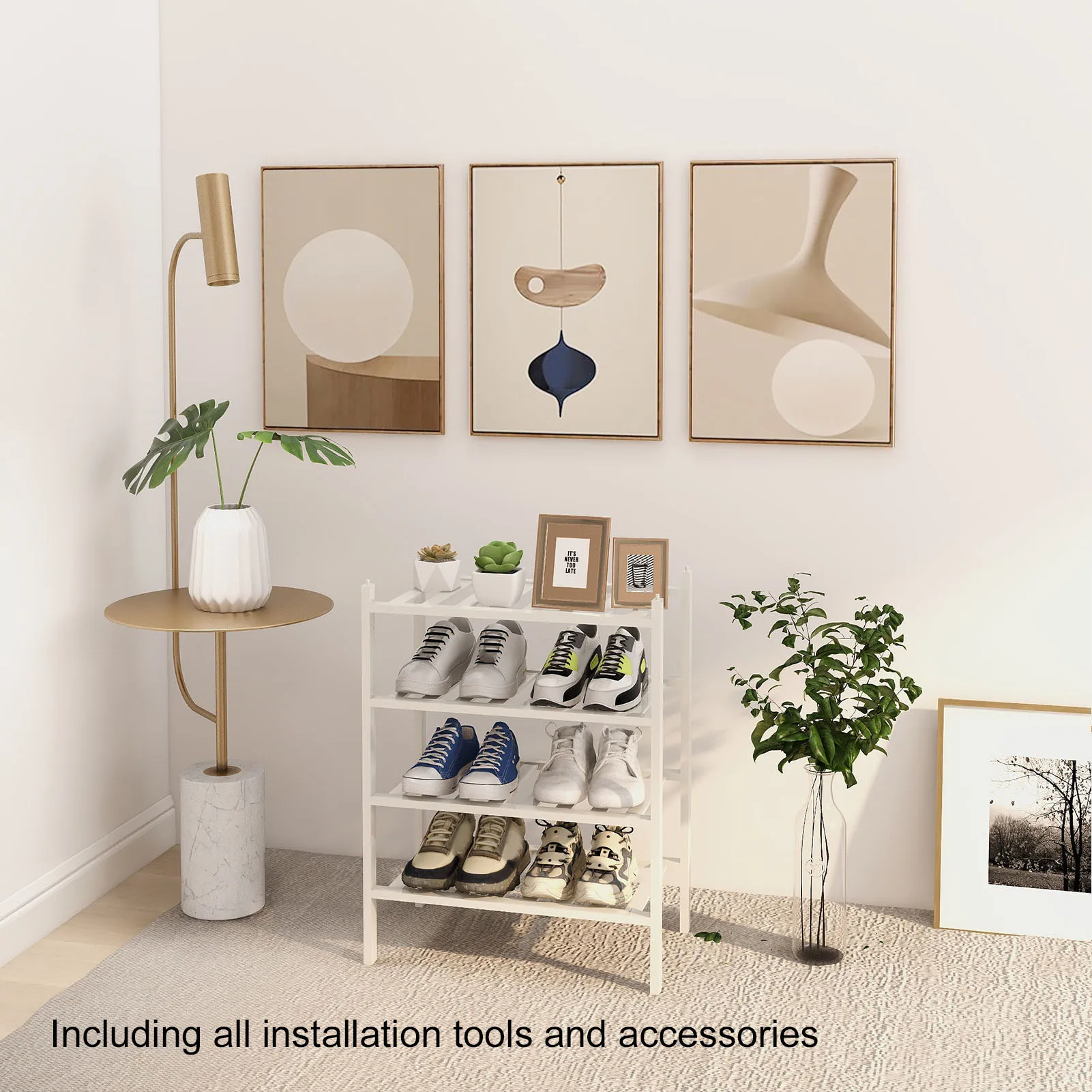"4 Tier Shoe Rack White Stackable Shoes Rack Organizer Multifunctional Bamboo Shoe Rack For Home Hotel Dorm" * Buy Now With Free Shipping Just For $41
