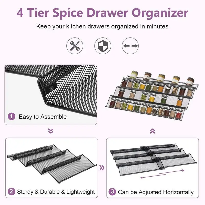 seSxgRtMЗдесь вы сможете купить 4 Tier Spice Drawer Organizer Metal Seasoning Bottle Storage Rack Expandable Under Desk Spice Rack Tray Kitchen Pantry Organizer с бесплатной доставкой до вашего почтового отделения.