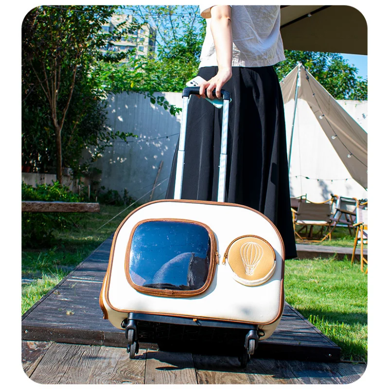 4 Wheel Shock Absorption Cat Backpack Reinforcement Rod Pet Trolley Visual Window Cage for Cats Multi-function Cat Trolley - Купить с бесплатной доставкой