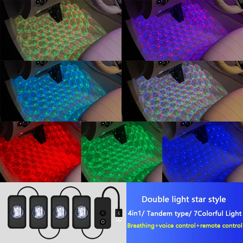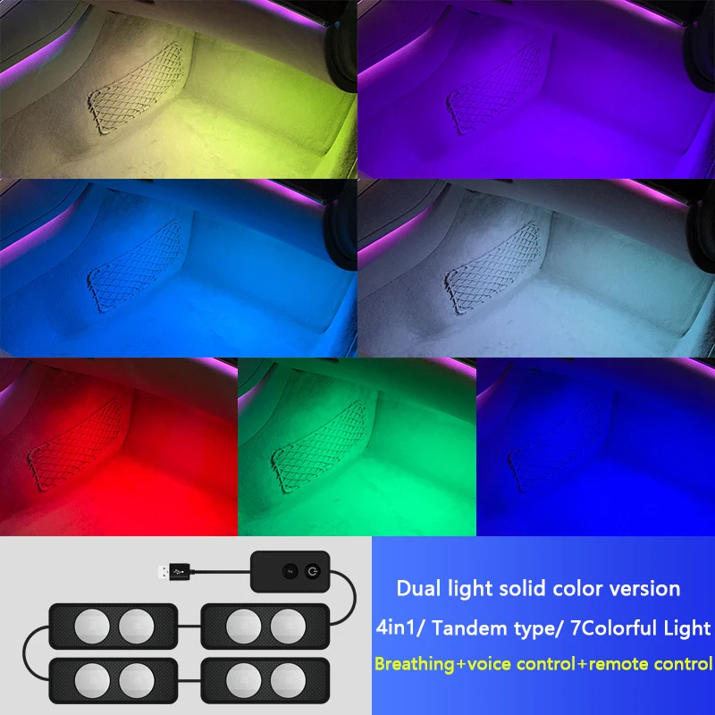 4 in 1 Car Interior Foot Lighting Colorful Voice Control RGB LED Car Ambient Lights Kit USB Music Rhythm Decor Atmosphere Lamp - Купить с бесплатной доставкой