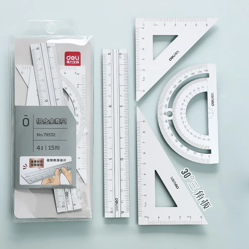 lEQKJlDrYiHere you can buy 4 in 1 Deli Metal Ruler Stationery Set Aluminum Alloy Multifunctional Combination Ruler Triangle Protractor Alloy Drawing with free delivery to your post office.