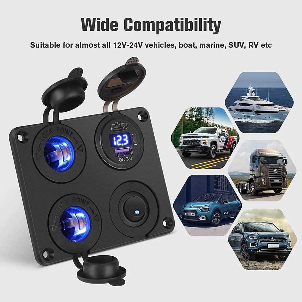 ZOXSEgMuhHHere you can buy 4 in 1 Panel QC 3.0 PD USB Car Charger with LED Voltmeter Cigarette Lighter Socket Rocker Toggle Switch for Marine Truck RV with free delivery to your post office.