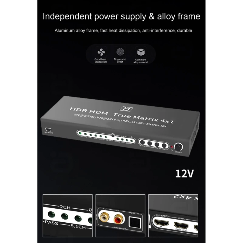 nPWRsJbXHere you can buy 4 in1Out HDMI2.1 8K Splitter Extractor Remote Control Converter Adapter P9JB with free delivery to your post office.
