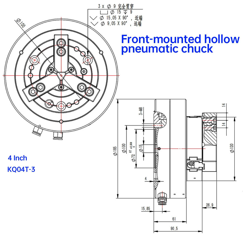 «4 inch 120mm 3-jaw Hollow Pneumatic Chuck Front-mounted KQ04-3 For Air CNC Lathe Machine Tool Rotating Power Chuck Fixture» по лучшей цене на рынке! Всего за 1263$ (119985рублей)