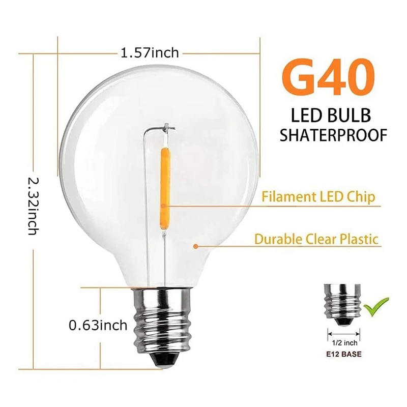 OtohfKVdHere you can buy 40 Pcs G40 LED Replacement Light Bulbs E12 Screw Base Shatterproof LED Globe Bulbs For Solar String Lights Warm with free delivery to your post office.