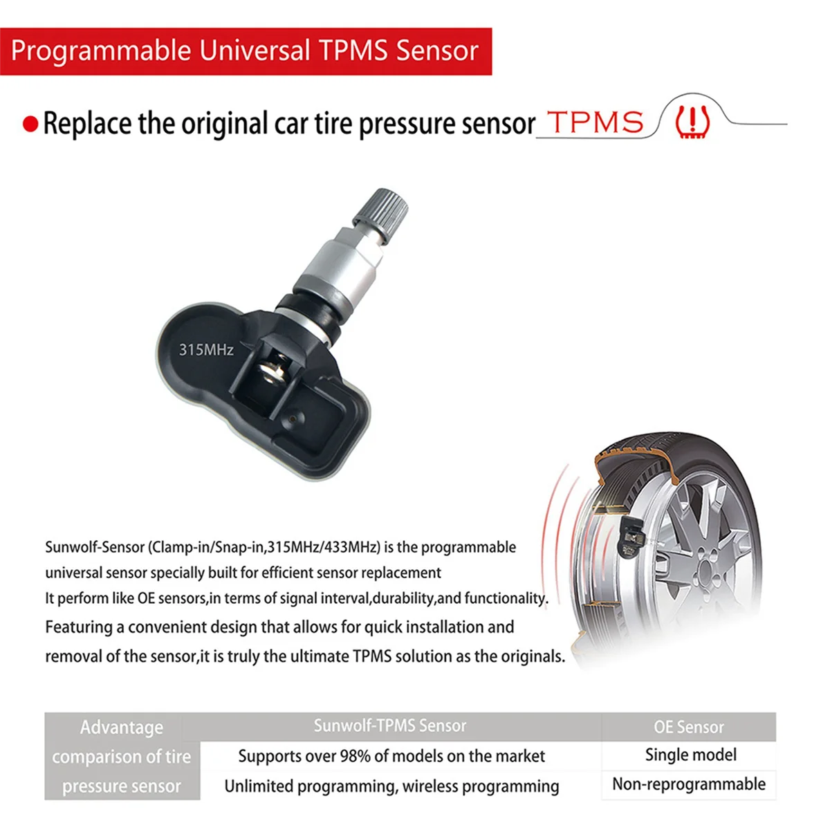 VTctyLKBaHere you can buy 40Pc TPMS Sensor 433MHz 315MHZ Sensor Universal 2 in 1 Tire Programmable TPMS Sensor for Tire Pressure Monitoring System with free delivery to your post office.