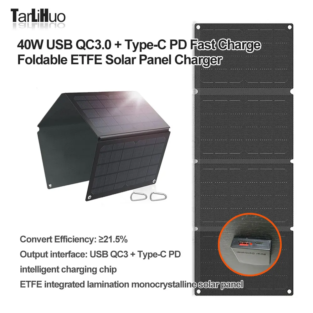 40W Folded ETFE Solar Panel for Phone,Pad Portable Solar Power Bank Type-C PD 15w USB QC3 Quick Charge Outdoor Solar Generation - Купить с бесплатной доставкой