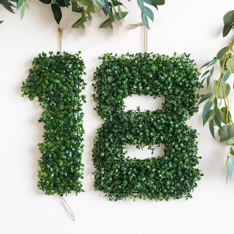 "40cm Simulation Plant Number Hang Wall Decoration Birthday Wedding Party Background Artificial Green Leafs Plastic Baby Shower" * Buy Now Just For 2$