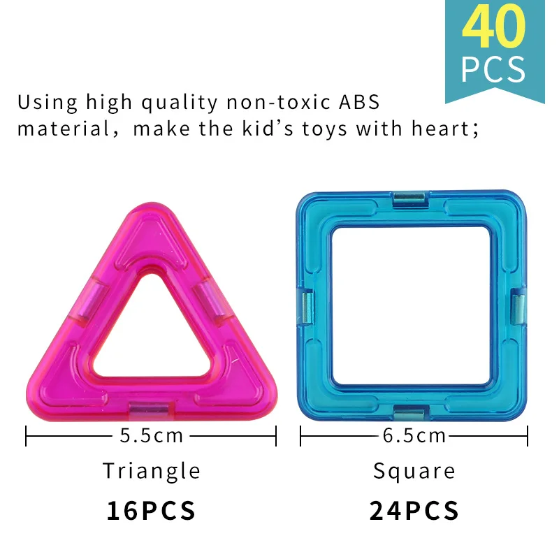 40pcs Magnetic Constructor Triangle Square Bricks Magnetic Building Blocks Designer Set Magnet Toys For Children Gift - Купить с бесплатной доставкой