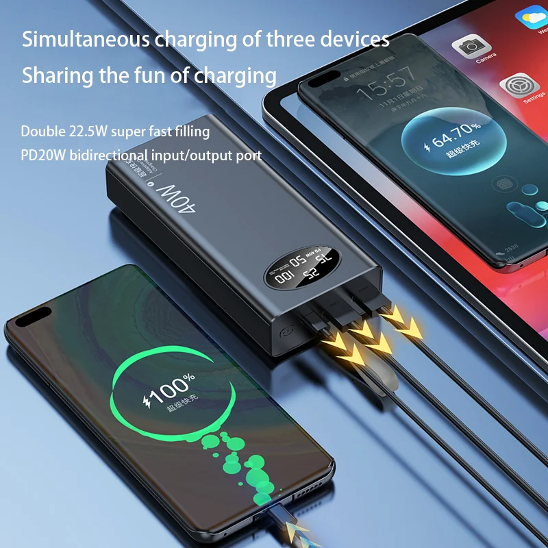 40w Super Fast Charging Large Capacity 30000mah Power Pack Bidirectional Fast Charging Digital Display External Battery PD20W - Купить с бесплатной доставкой
