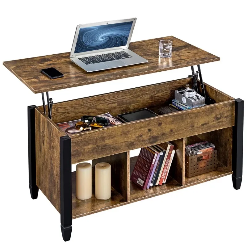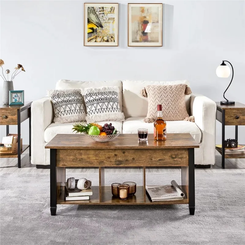 "41" Lift Top Coffee Table with 3 Storage Compartments, Rustic Brown" * Buy Now With Free Shipping Just For $39