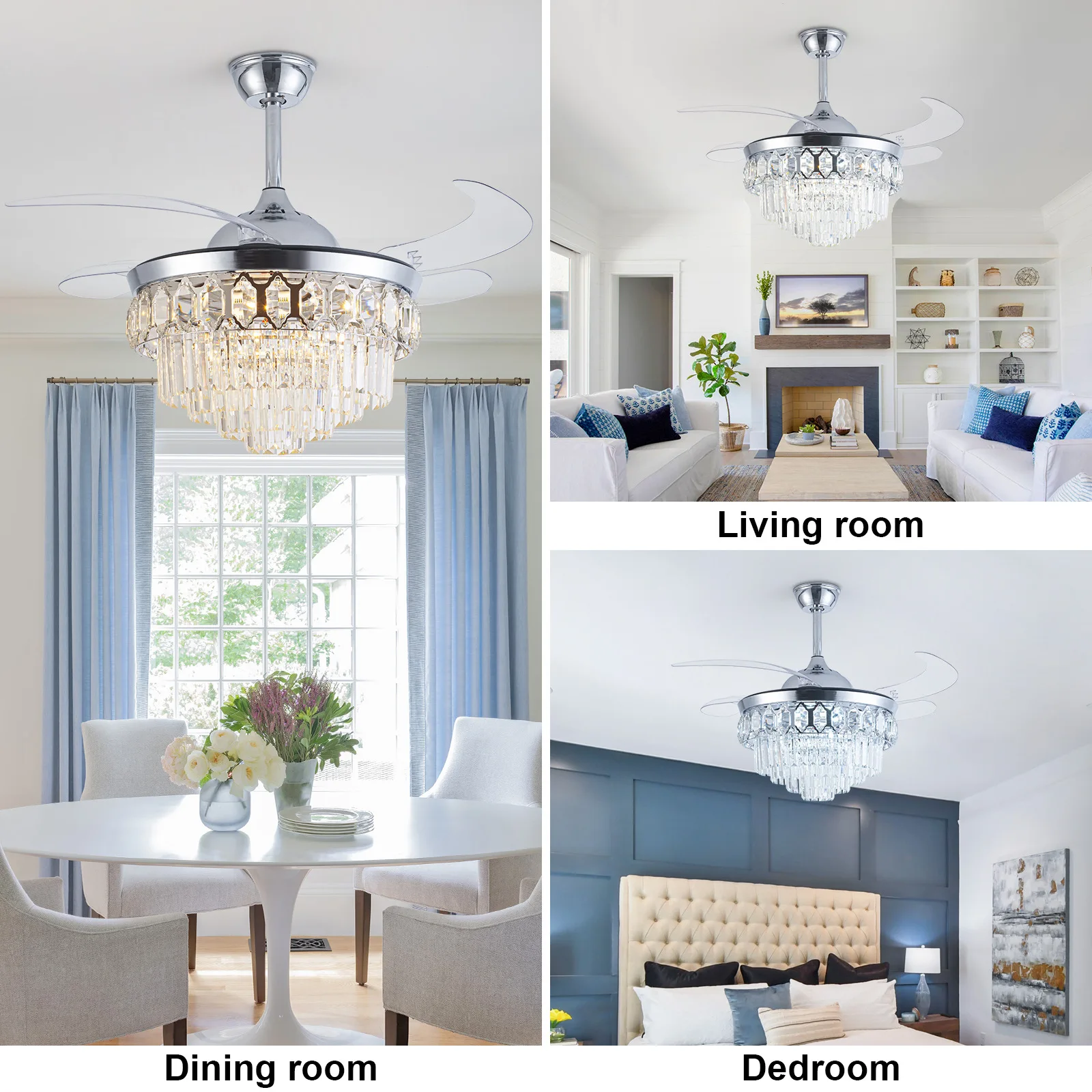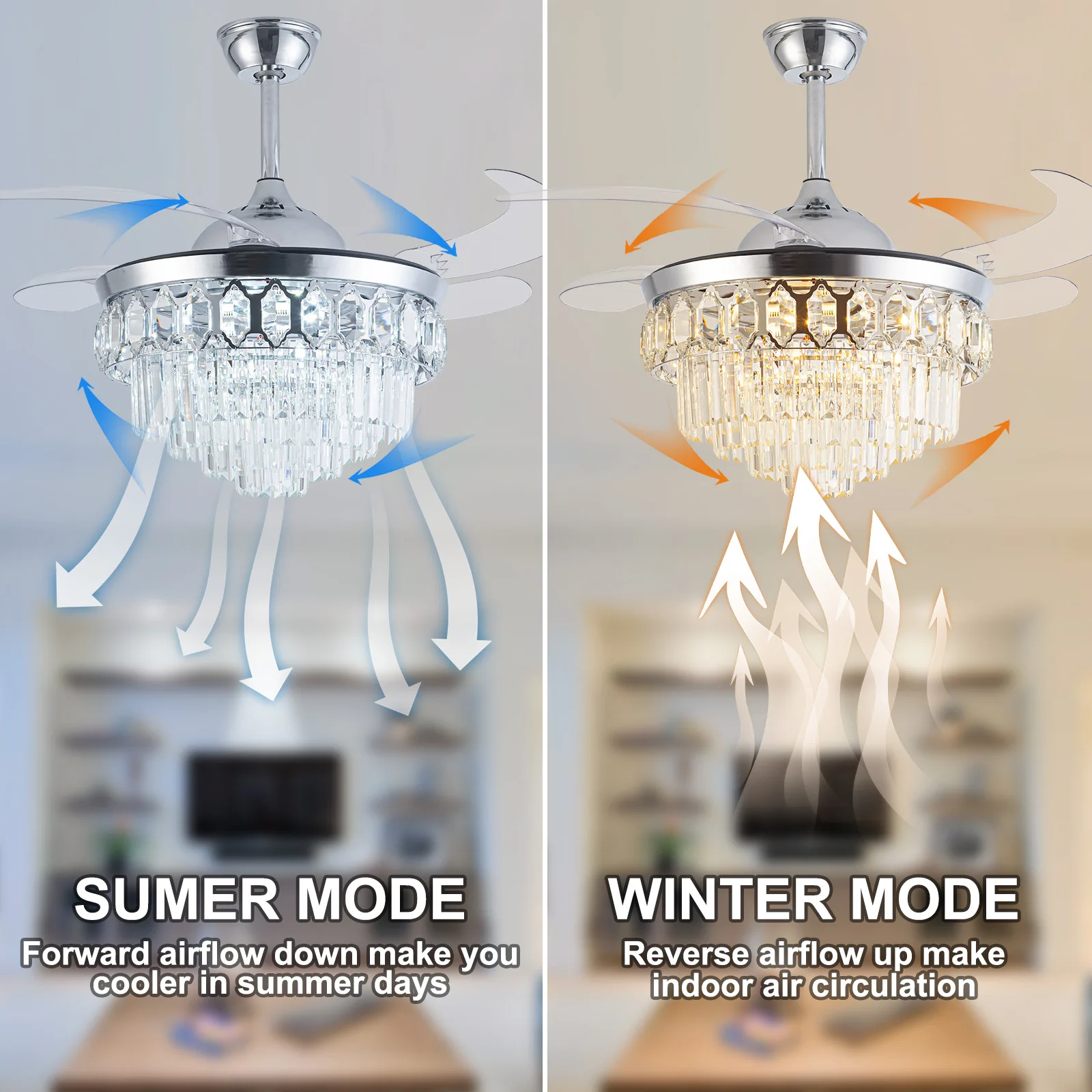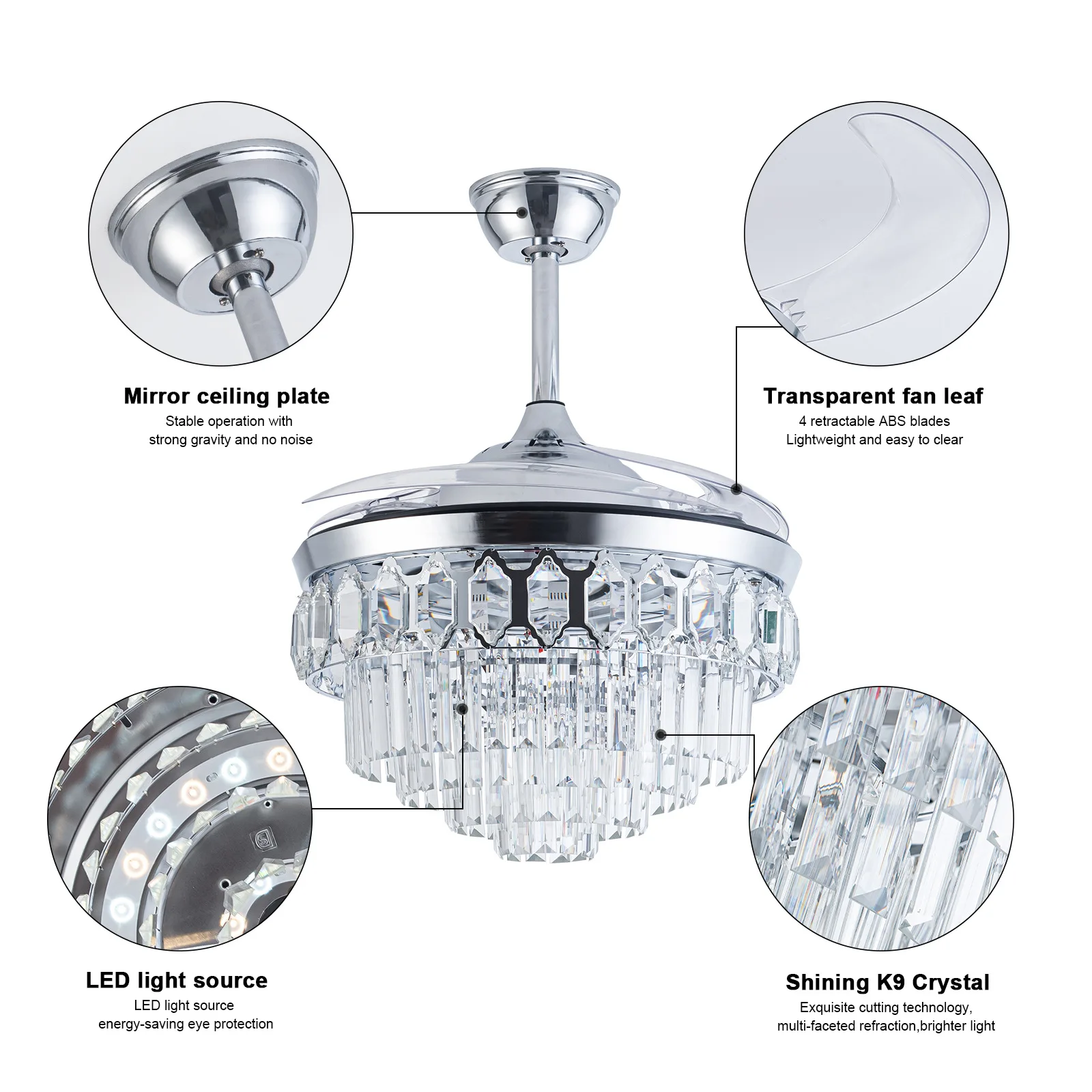 tTvDLncskHere you can buy 42 Inch Luxury Crystal Ceiling Fan With Light Modern Invisible Fan Lamp Living Room LED Chandelier Light Electric Fan DC Motor with free delivery to your post office.