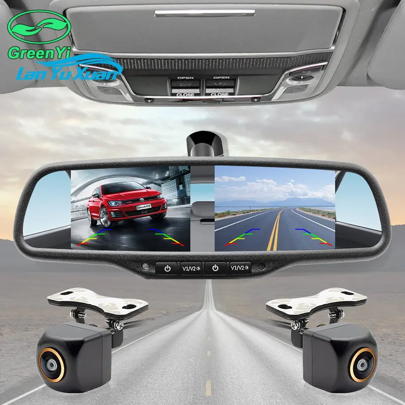 4.3 Inch Dual HD Display Screen Car Rear View Interior Mirror for Rear View Camera 4 CH Video Input /HD Display Screen Car Rear - Купить с бесплатной доставкой