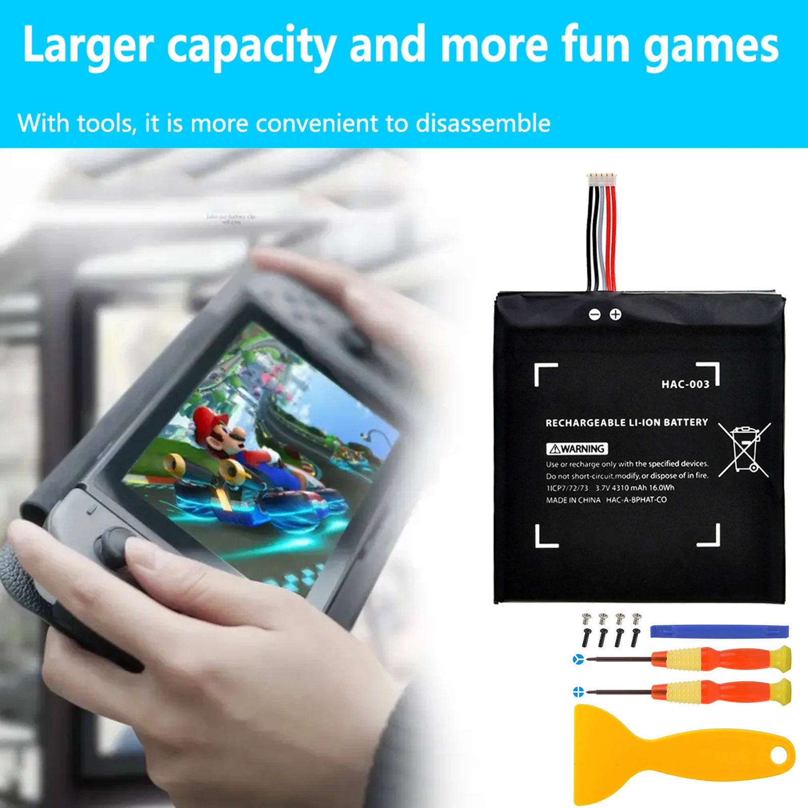 "4310mAh HAC-003 Battery Replacement Compatible with Nintendo Switch Console HAC-001, Free Installation Tools Kit" * Buy Now With Free Shipping Just For $12