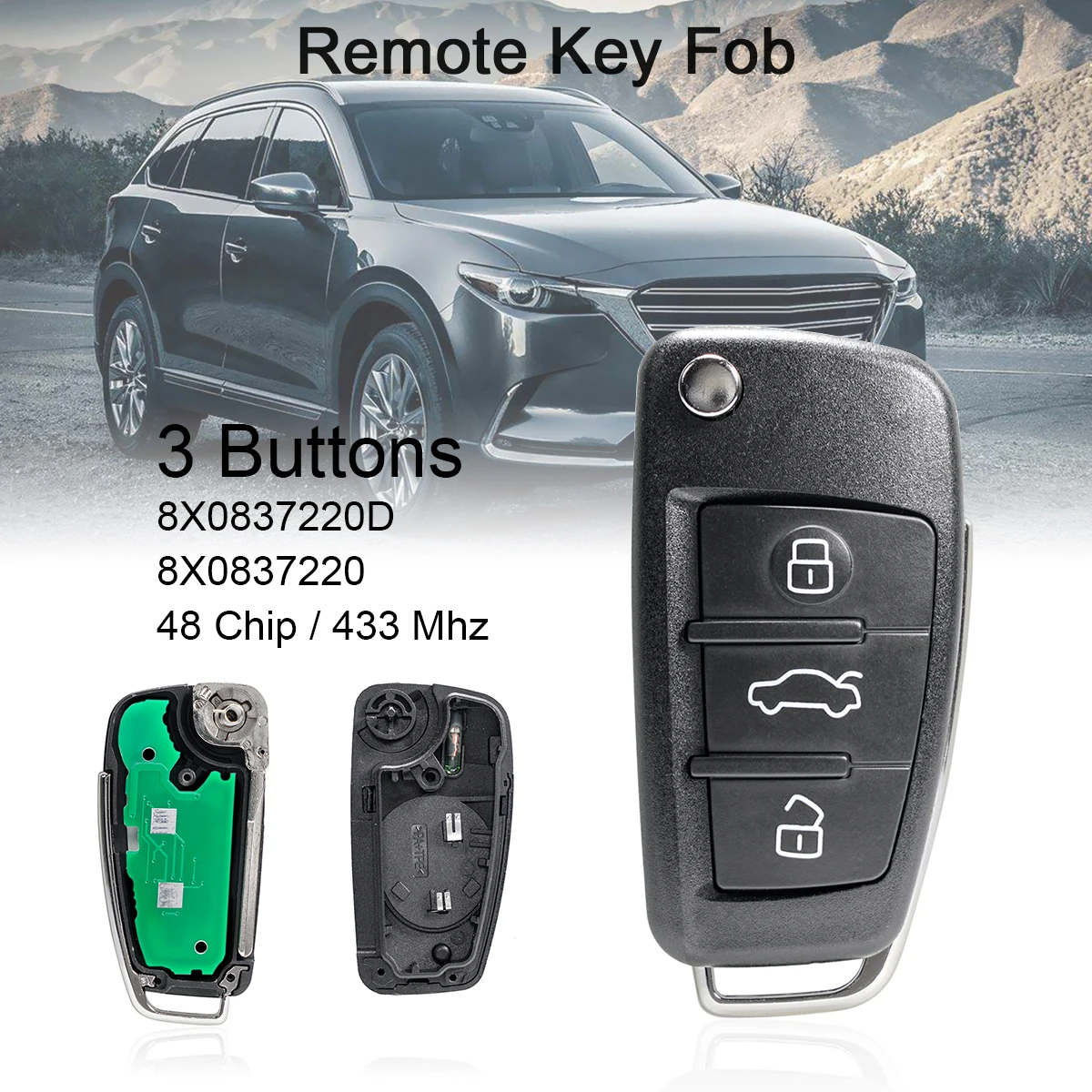 "433Mhz 3Buttons Car Remote Key with ID48 Chip /8X0837220D 8X0837220 Fit for Audi A1 Q3 S1 2010 2011 2012 2013 2014 2015 2016" * Buy Now Just For 24$