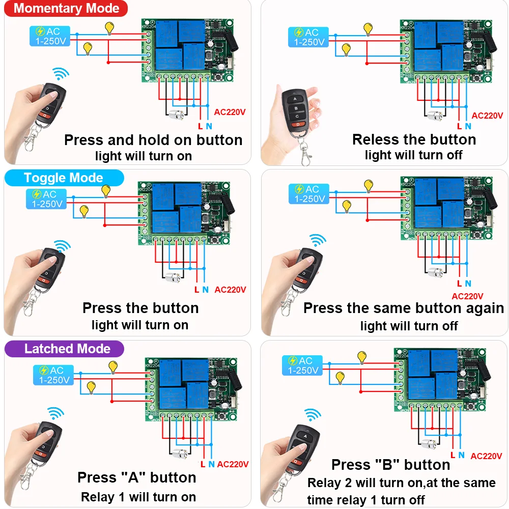 AywKuQMXyQHere you can buy 433Mhz Universal Wireless Remote Control AC110V 220V Relay 4CH Module Receiver 4B Transmitter For Garage Door Gate Motor Light with free delivery to your post office.
