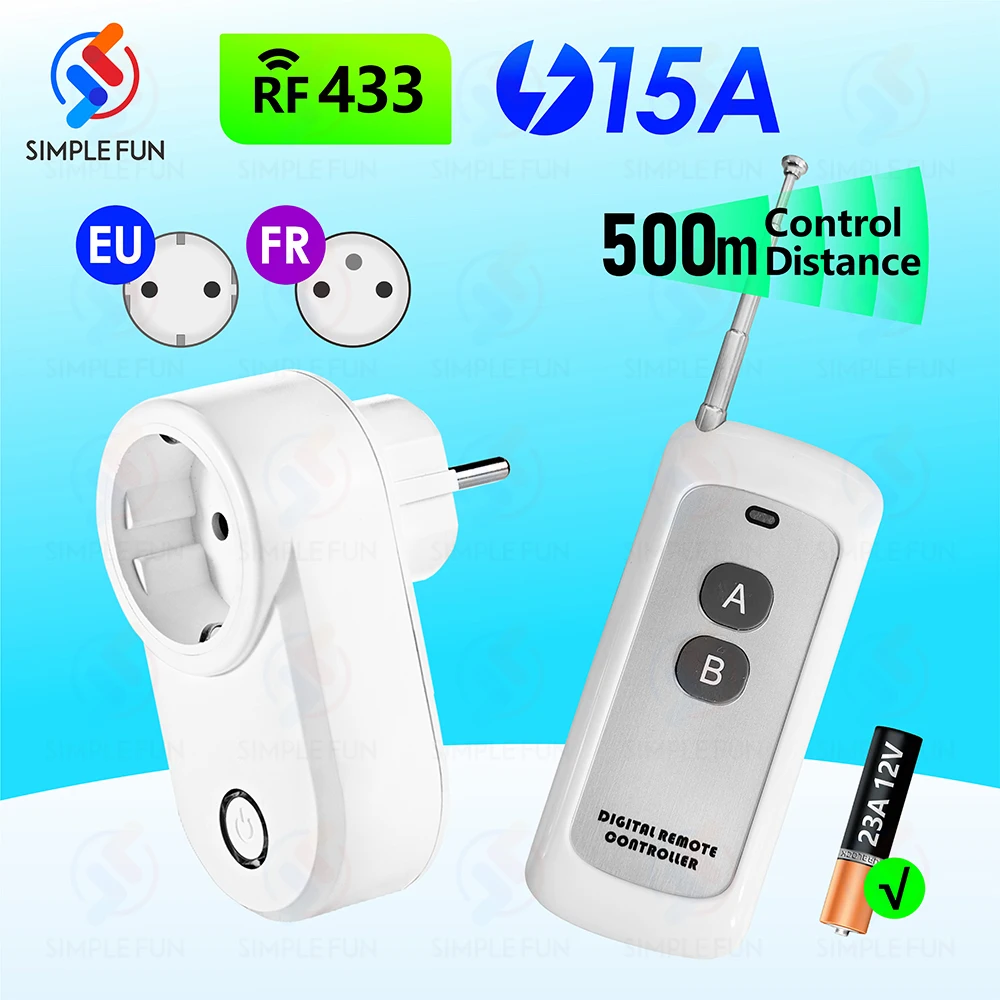 YaASnxgUHere you can buy 433Mhz Wireless Smart Plug Universal Remote Control Socket EU FR,500m Remote,15A 220V Outlet for Smart Home Light Fan ON OFF with free delivery to your post office.
