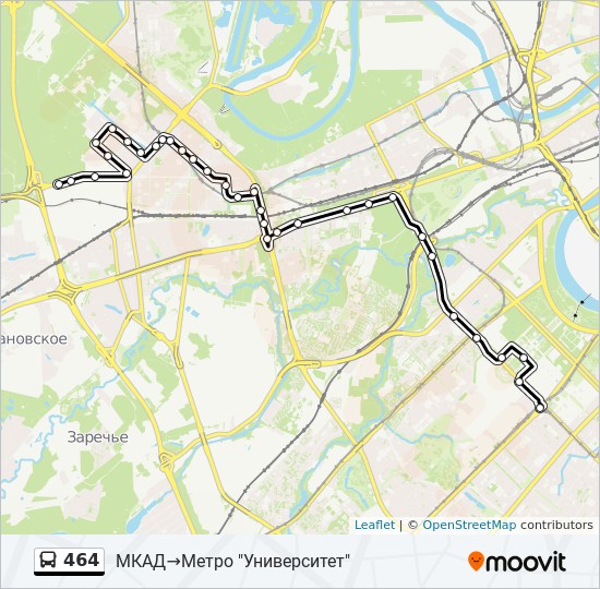 Расписание городского автобуса №464 МКАД - МКАД города Москва на сегодня по маршруту Метро "Университет" - МКАД на карте города за 2021 год . Автобус №464, МКАД - МКАД .