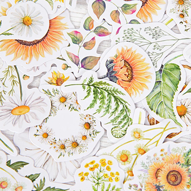 "46Sheets Chrysanthemum Sunflower Plant Box Stickers Notebook Manual Decorative Sticker Poster Sticker Collage Kids Students Gift" * Buy Now With Free Shipping Just For $1