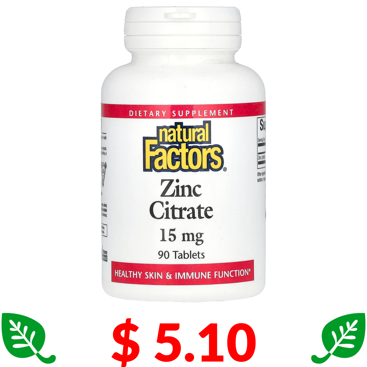 $ 5.10 Natural Factors, цитрат цинка, 15 мг, 90 таблеток