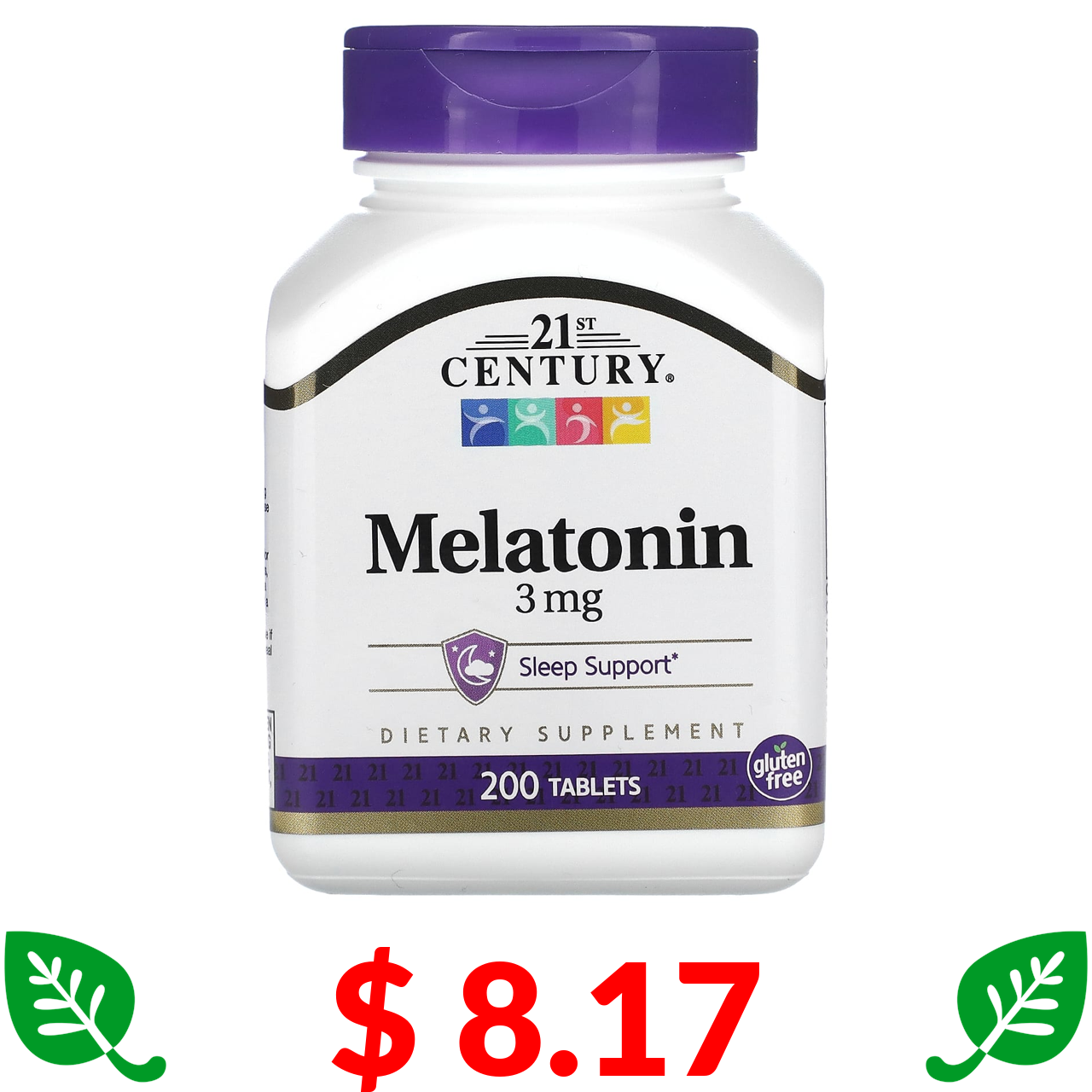 $ 8.17 21st Century, Мелатонин, 3 мг, 200 таблеток