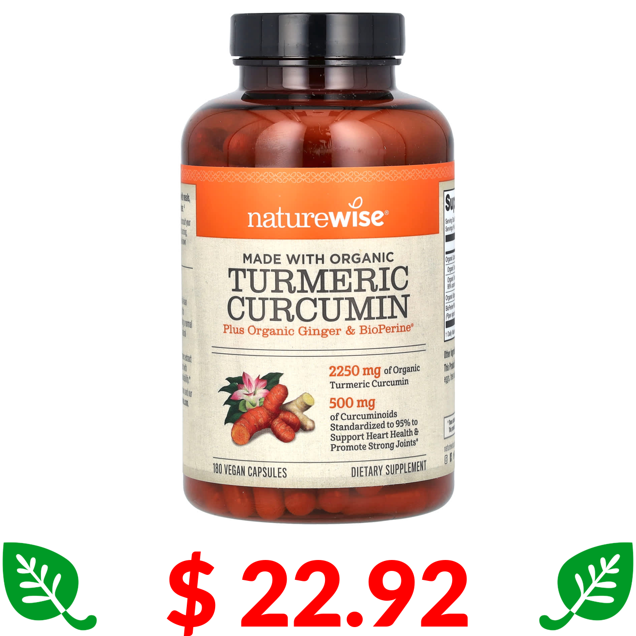 $ 22.92 NatureWise, куркумин из органической куркумы, 180 веганских капсул