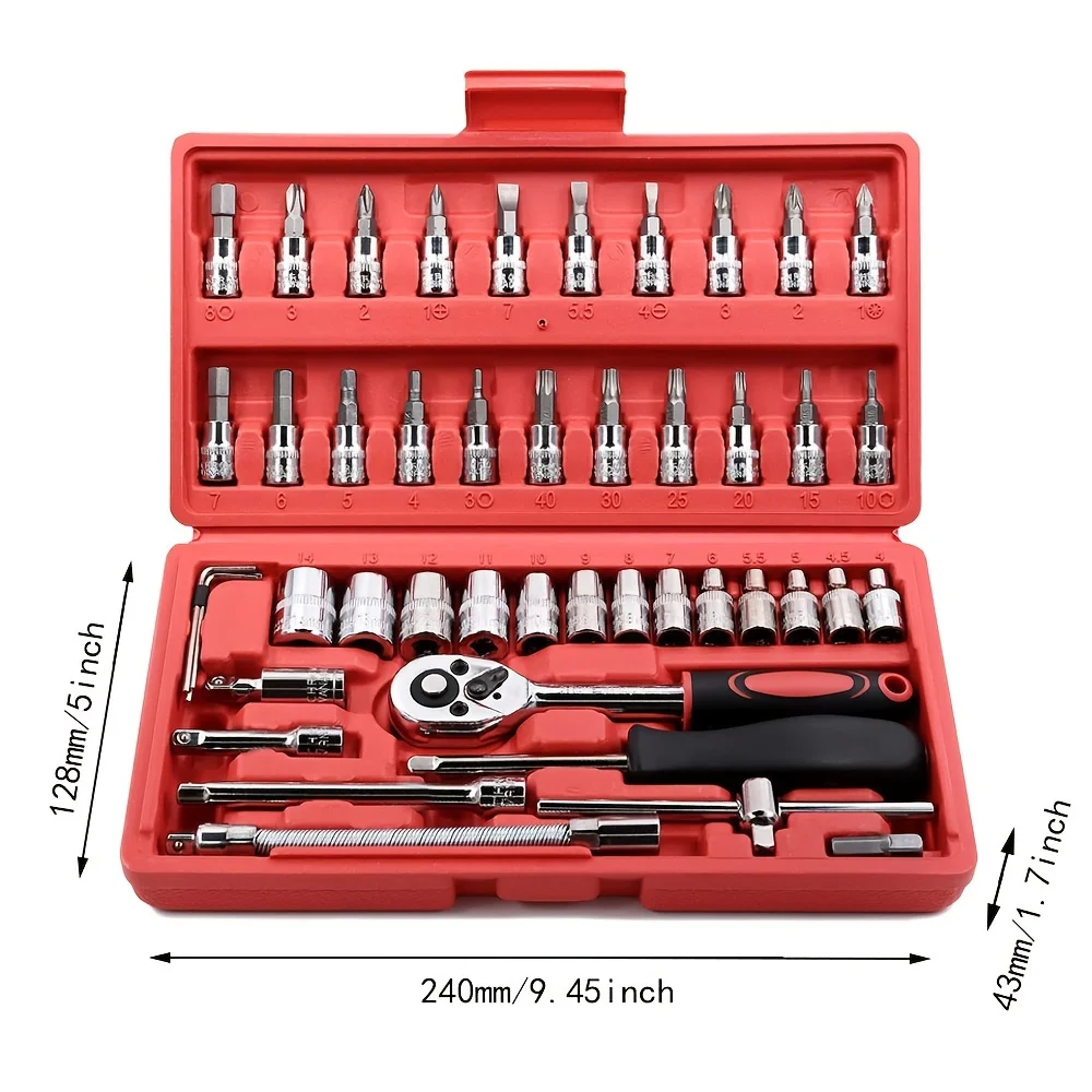 46pcs 1/4 Inch Drive Socket Ratchet Wrench Set, With Bit Socket Set Metric And Extension Bar For Auto Repairing And Household, W - Купить с бесплатной доставкой