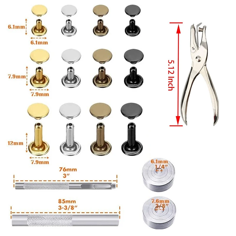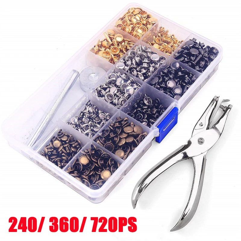 480/360/240pcs Leather Rivets Double Cap Rivet Round Metal Studs with Punch Pliers Fixing Set for DIY Leather Craft Rivets - Купить с бесплатной доставкой