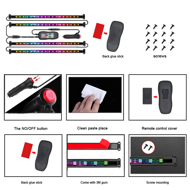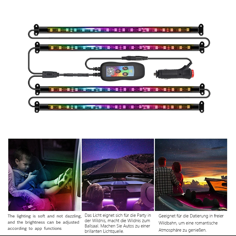 BUqozzXfHere you can buy 4In1 RGB 72 LED Car Interior Ambient Foot Light Backlight USB Music Wireless APP Control Neon Auto Atmosphere Decorative Lamps with free delivery to your post office.