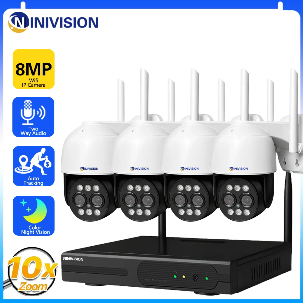 4K 8CH 8MP WiFi PTZ Camera System H.265 10X Digital Zoom Security Set Two-way Audio Humanoid Auto Tracking Color Night Vision - Купить с бесплатной доставкой