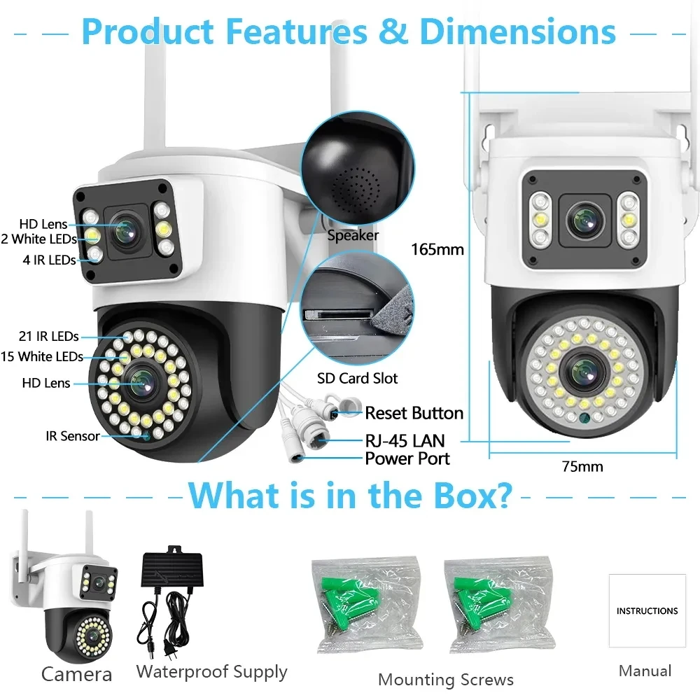 FmvLJIwBHere you can buy 4K 8MP 4G YOOSEE IP Camera Dual Lens PTZ Wifi Camera Dual Screen Auto Tracking Two Way Audio Color Night Vision Security Camera with free delivery to your post office.