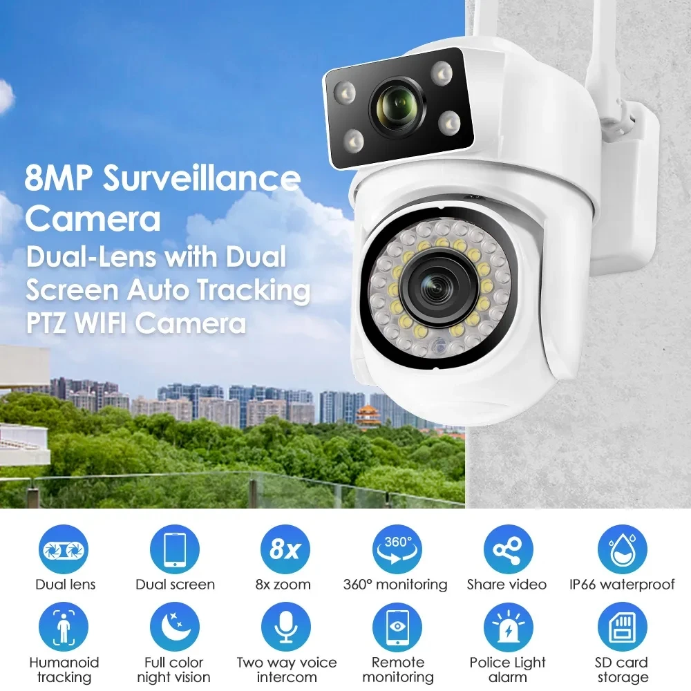 mmxBIpqNYGHere you can buy 4K 8MP Dual Lens WiFi Camera 2K 4MP Dual Screen Outdoor PTZ Camera Waterproof Auto Tracking Security Mini Security CCTV Camera with free delivery to your post office.
