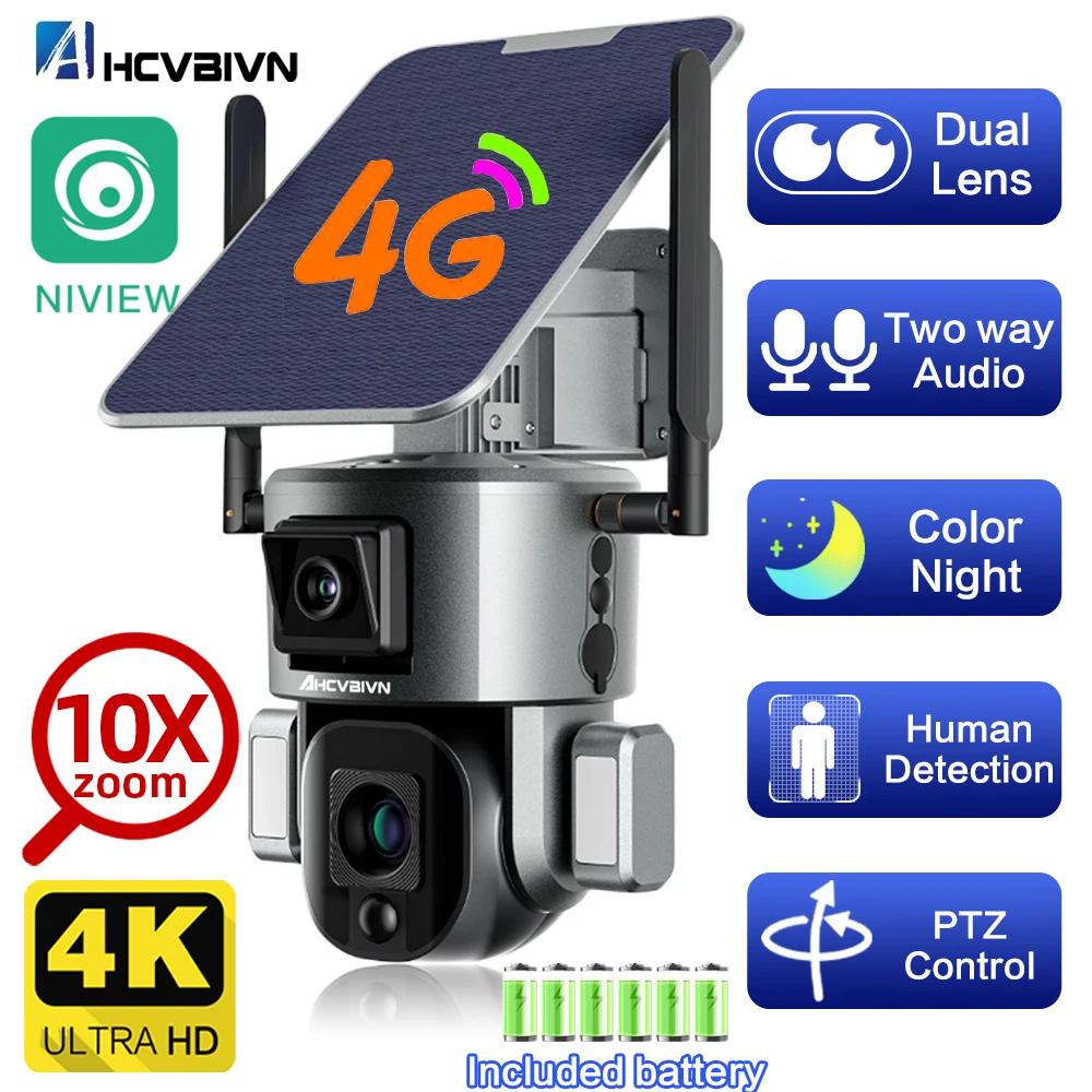 pFrxiEAcHere you can buy 4K 8MP Solar Camera 360° PTZ 10X Zoom 4G SIM /WIFI Security Outdoor Audio Camera Humanoid Tracking Color Night Vision Camera with free delivery to your post office.