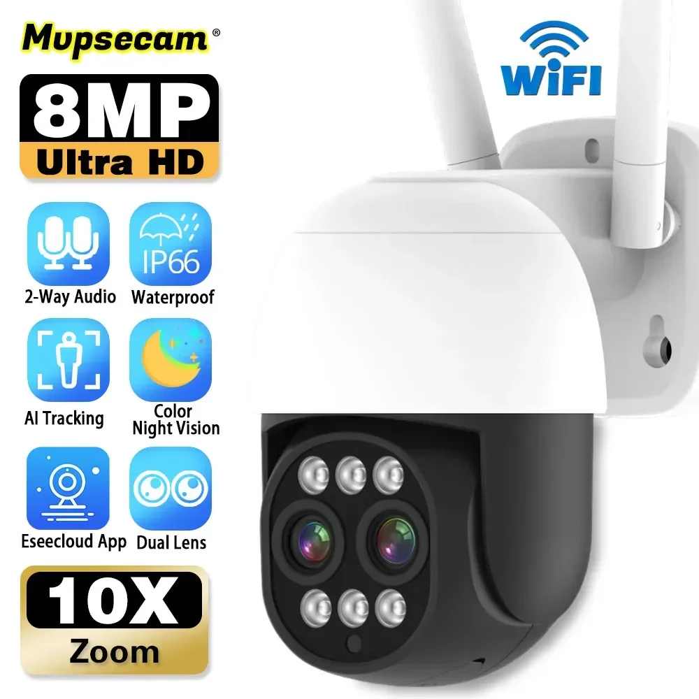 EjzbaTghRHere you can buy 4K 8MP WIFI Camera PTZ Dual Lens 10X Digital Zoom Outdoor AI Humanoid Auto Tracking Zoom Two-Way Audio 4MP+4MP Security Camera with free delivery to your post office.
