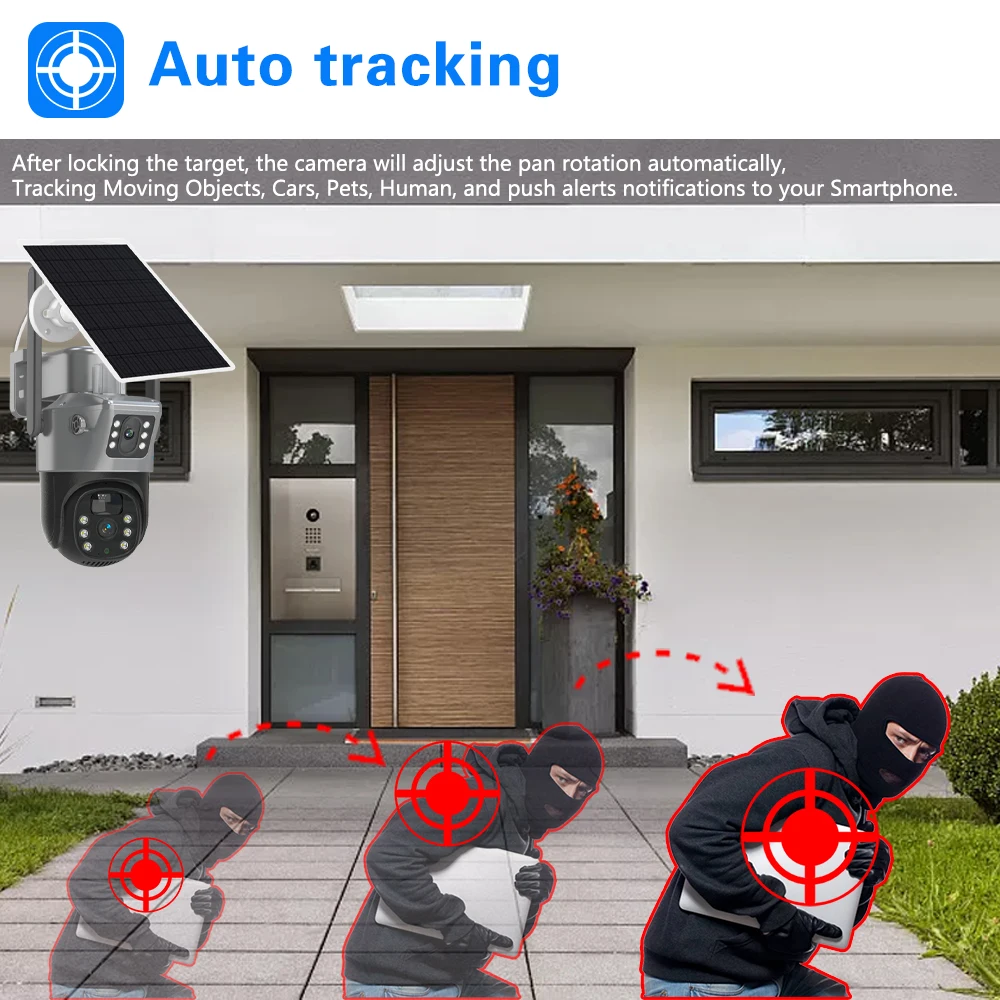 YPLqoxABjNHere you can buy 4K Auto Tracking CCTV WiFi PTZ IP Camera Solar Powered Outdoor Dual Lens 4G Wireless Security Surveillance Camera 2 Way Audio with free delivery to your post office.