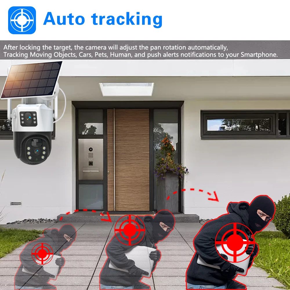DKLfXXTtIUHere you can buy 4K Auto Tracking CCTV WiFi PTZ IP Camera Solar Powered Outdoor Dual Lens 4G Wireless Security Surveillance Camera 2 Way Audio with free delivery to your post office.