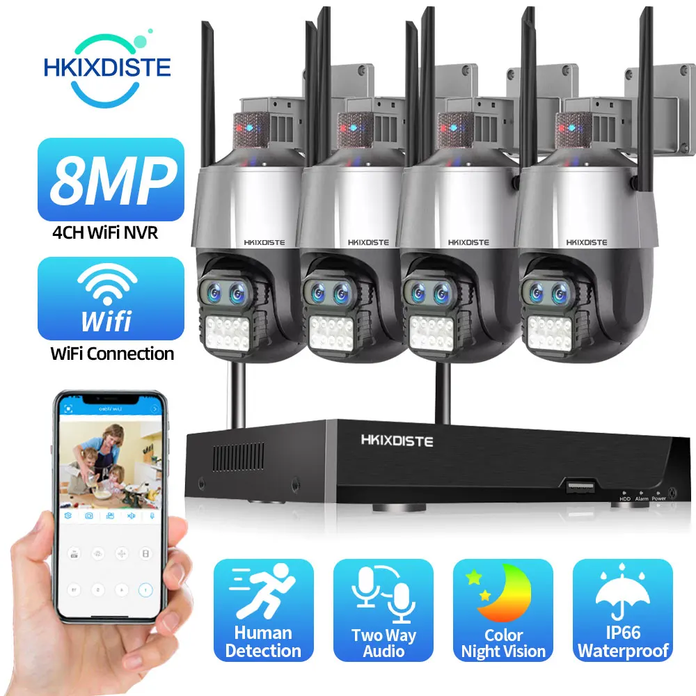 QhUPBuktHere you can buy 4K Dual Lens Wifi CCTV Camera Security System Kit Outdoor Ai Human Auto Tracking PTZ IP Camera NVR Surveillance System Kit 4CH with free delivery to your post office.