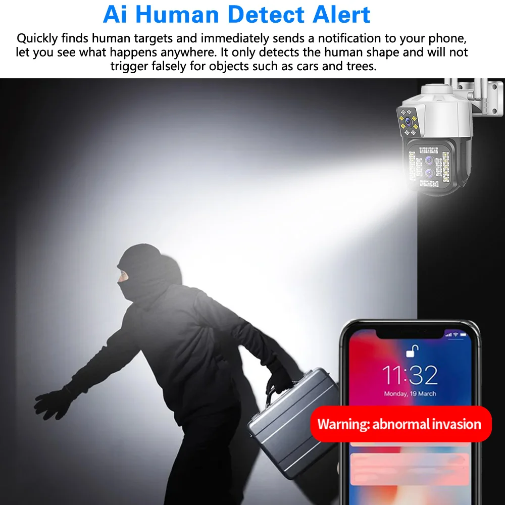 BjClJaufHere you can buy 4K HD 10X Zoom WIFI Surveillance Camera AI Tracking Color Night Remote Access PTZ Smart 8MP Outdoor Wireless Security IP Camera with free delivery to your post office.