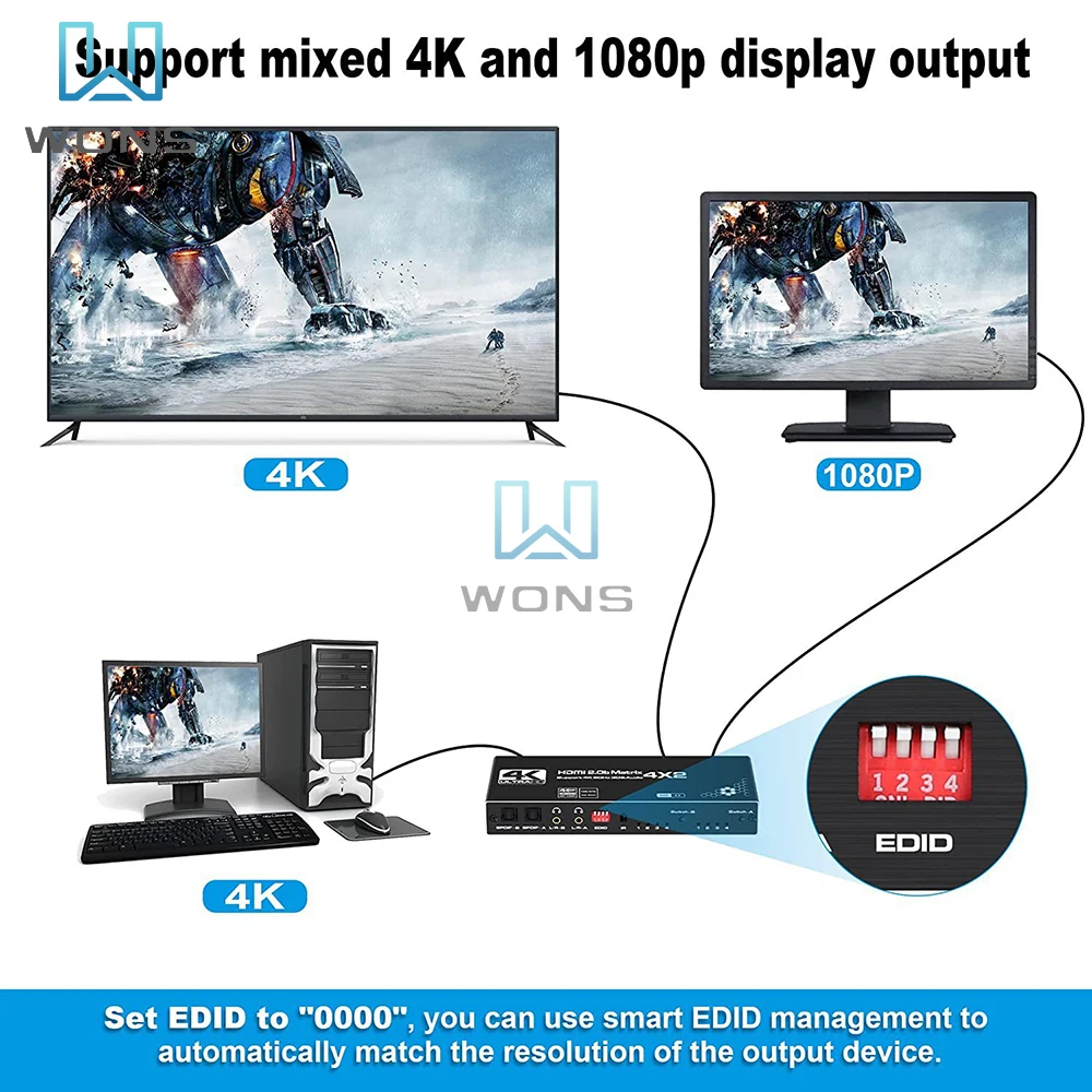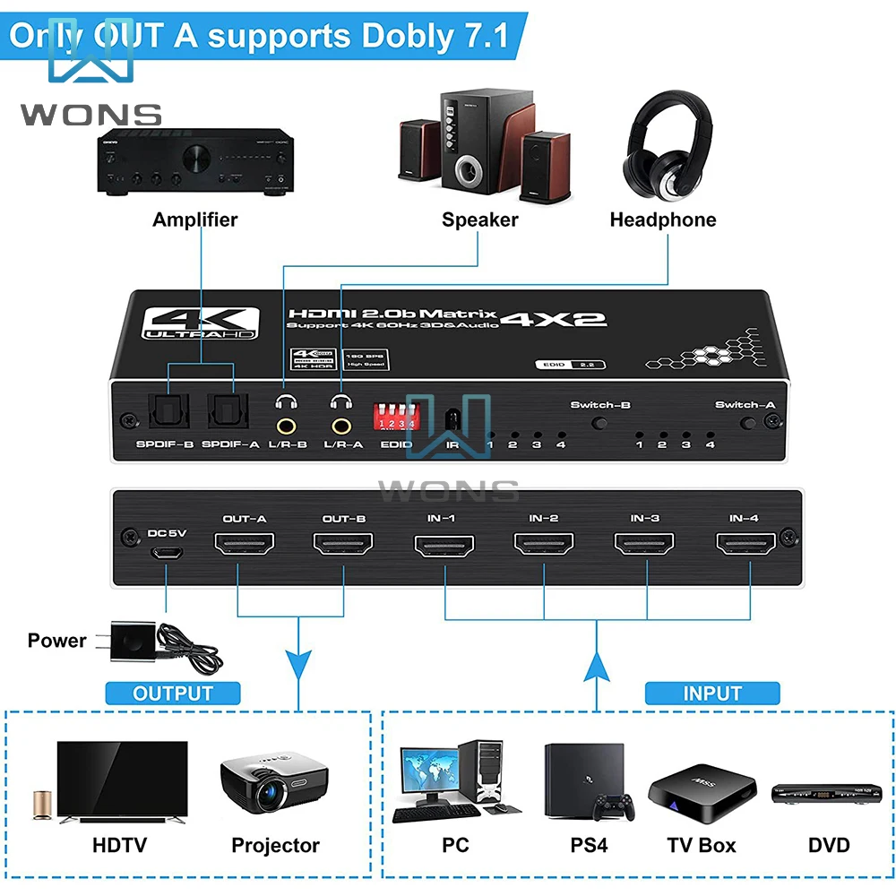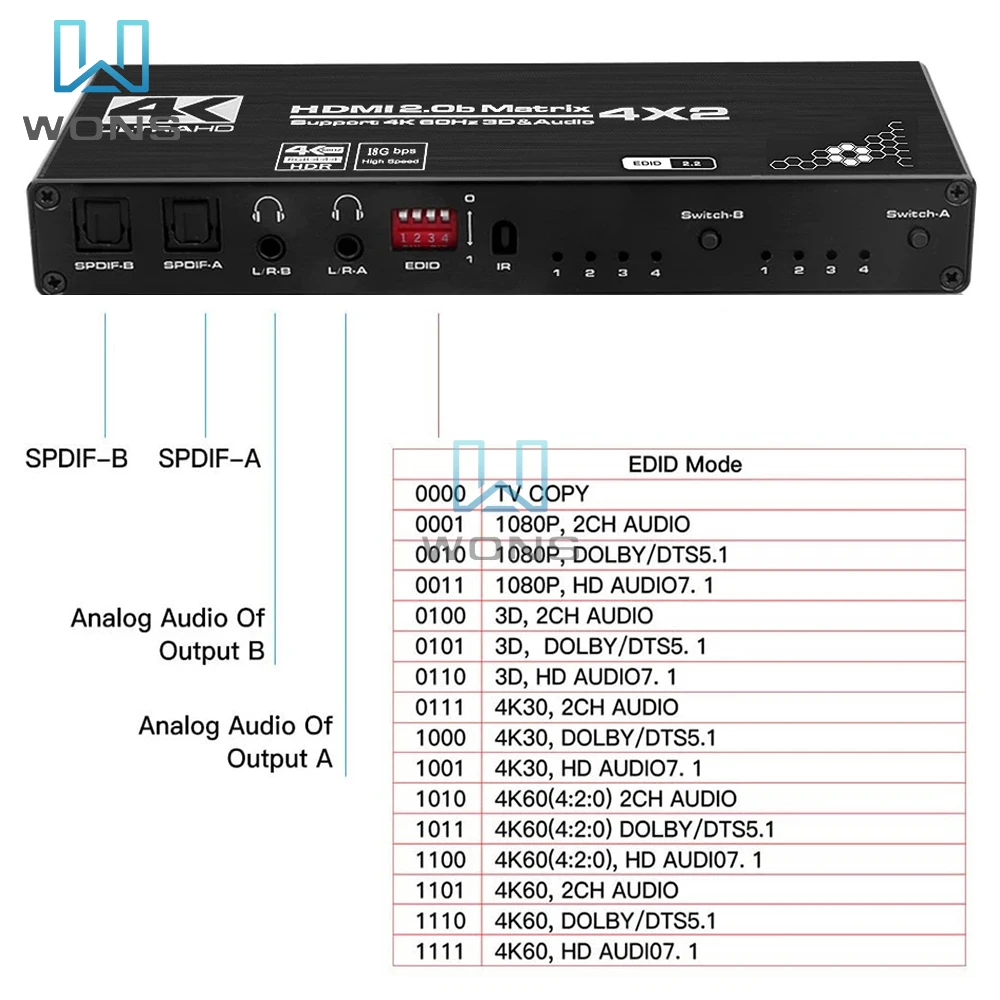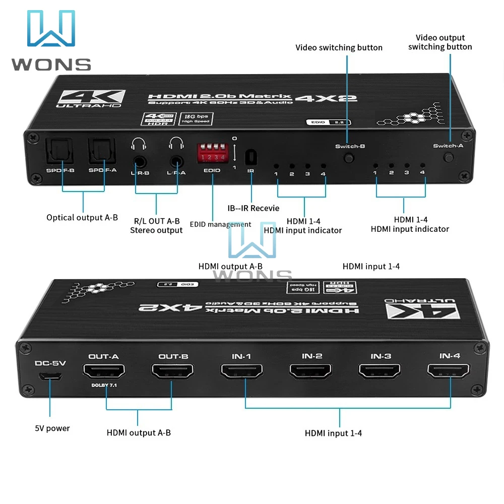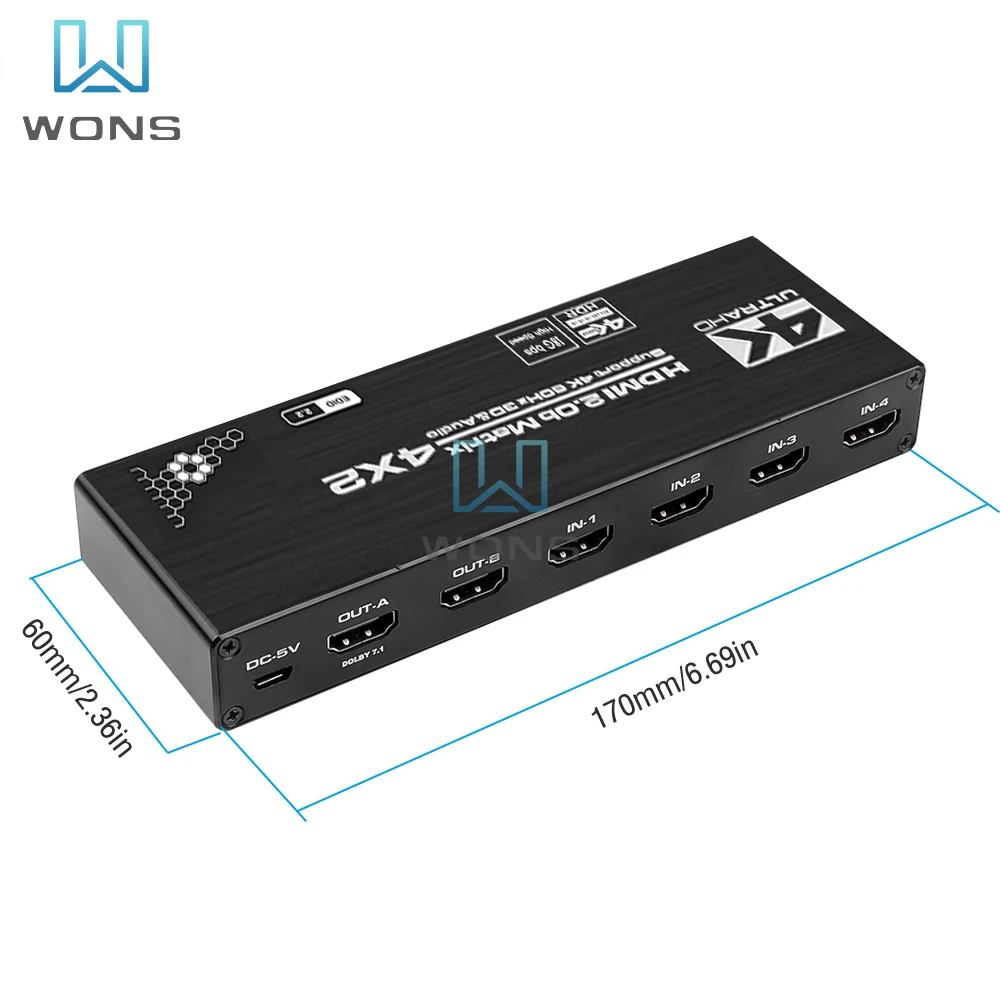 pfQEssTmToHere you can buy 4K HDMI Switch Splitter 4X2 2.0 Matrix HDMI Video Switcher Splitter Support 4K@60Hz HDR10 Dolby Vision With IR Remote Control with free delivery to your post office.