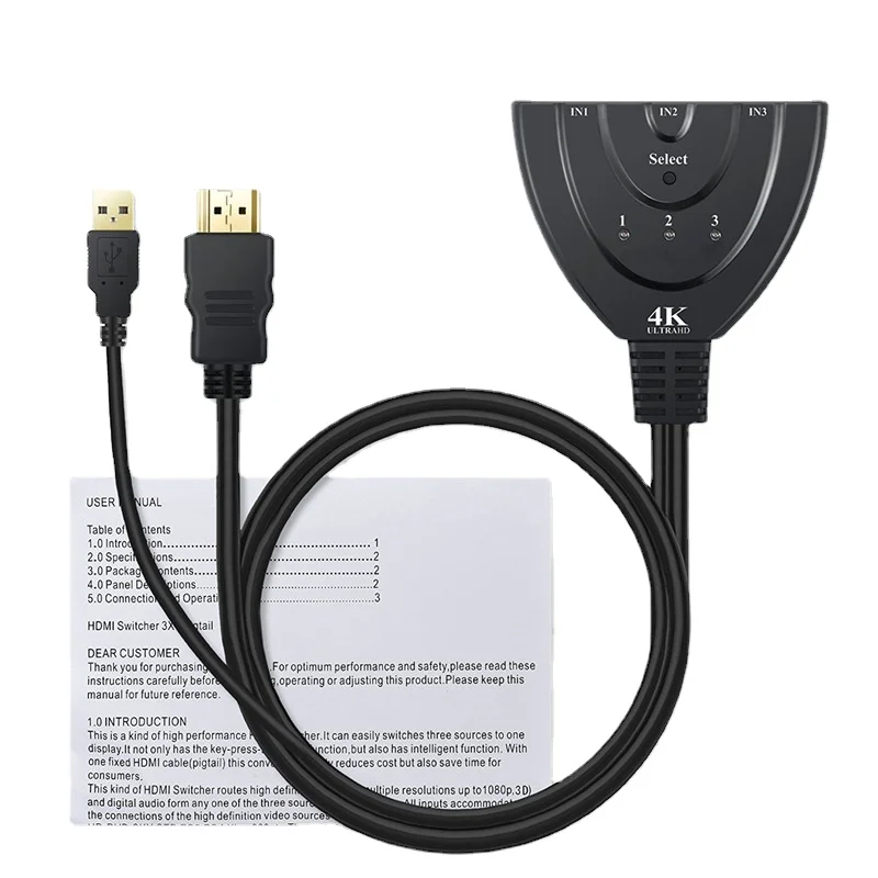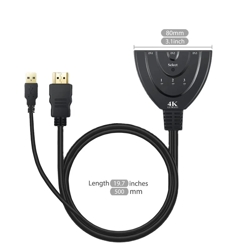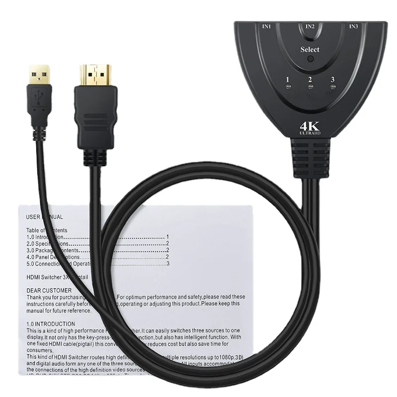 EKyrIcYYpdHere you can buy 4K HDMI Switcher - 3 Input 1 Output Pigtail Design with USB Power Cable with free delivery to your post office.