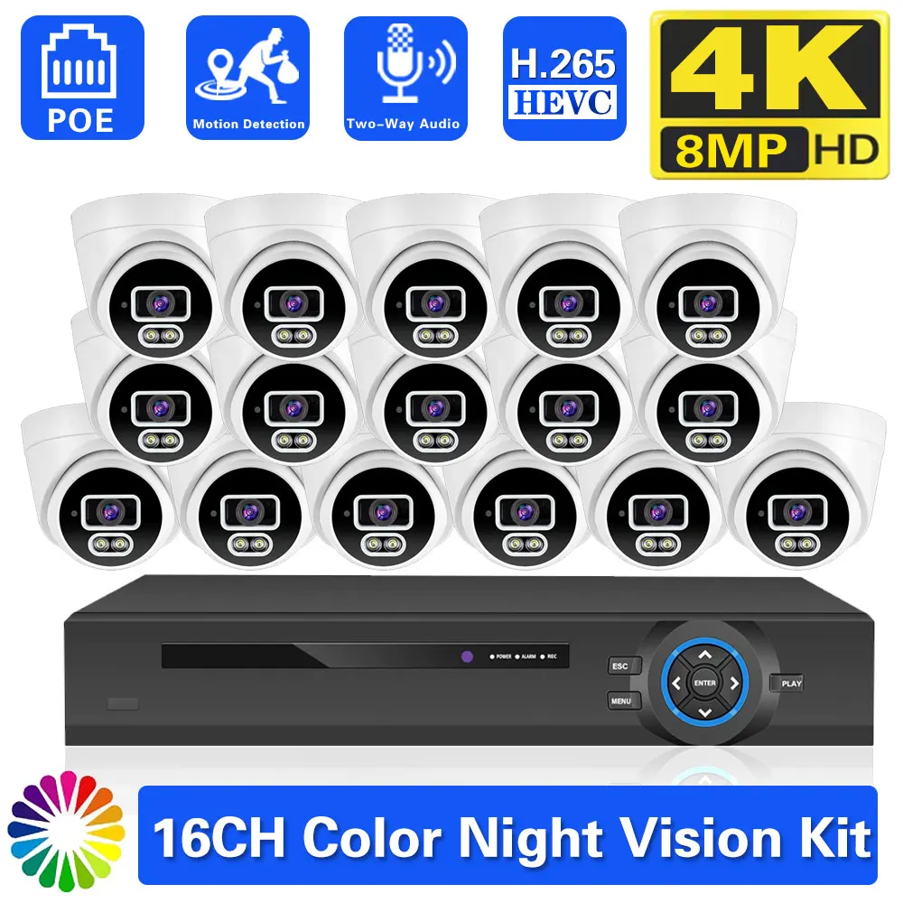4K POE Security Camera System 16CH NVR Kit 8MP Dome Camera Ai Human Detect Outdoor 8MP Two Way Audio 8CH Video Surveillance Set - Купить с бесплатной доставкой