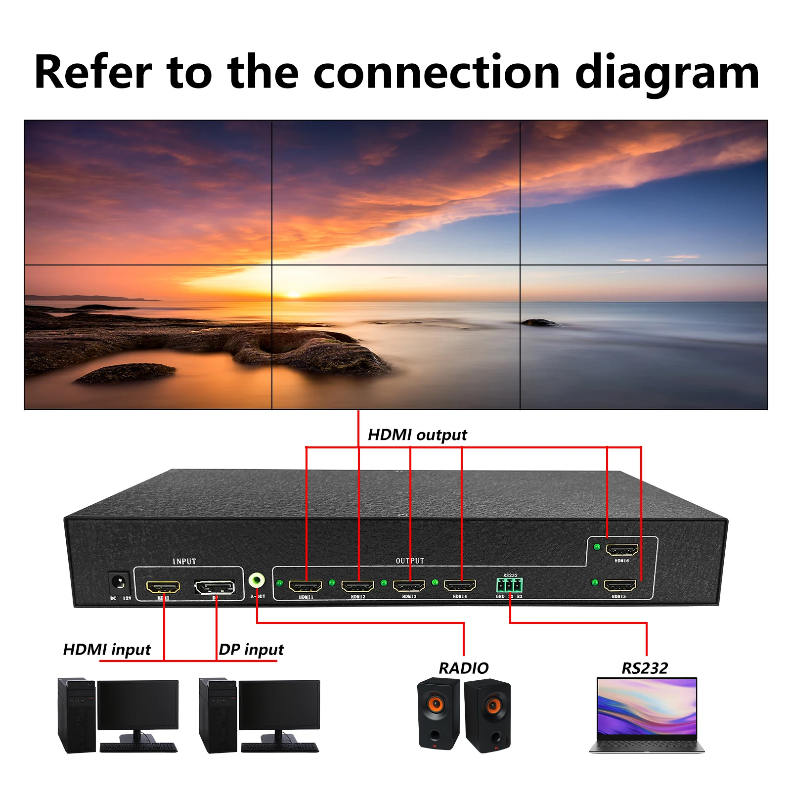 qxQtLMNFAHere you can buy 4K Video Wall Controller 1in 6out 2x3 Processor Ultra HD Supports DP Point-to-Point Input HDMI-compatible 1.4+DP1.2 Splicing Box with free delivery to your post office.