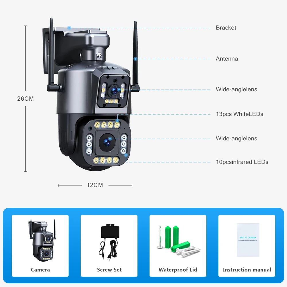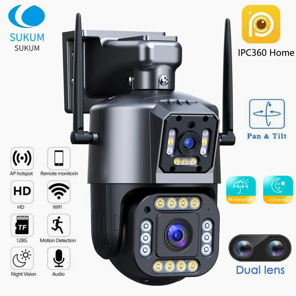 4MP Dual Lens Dual Screen WIFI Camera Outdoor Security Protection IPC360 Home APP Waterproof CCTV Camera Color Night Vision - Купить с бесплатной доставкой